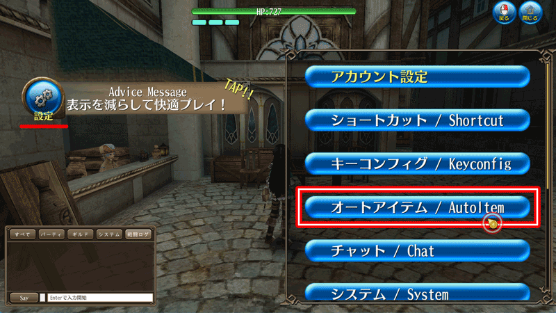 設定 > オートアイテム]から自動で破棄するアイテムを設定できます。
