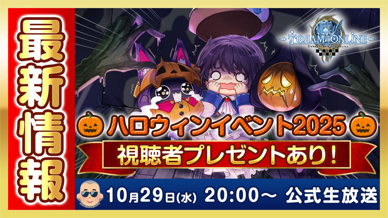 10月 29日(水) 20:00からは、トーラムオンライン公式生放送を実施いたします!